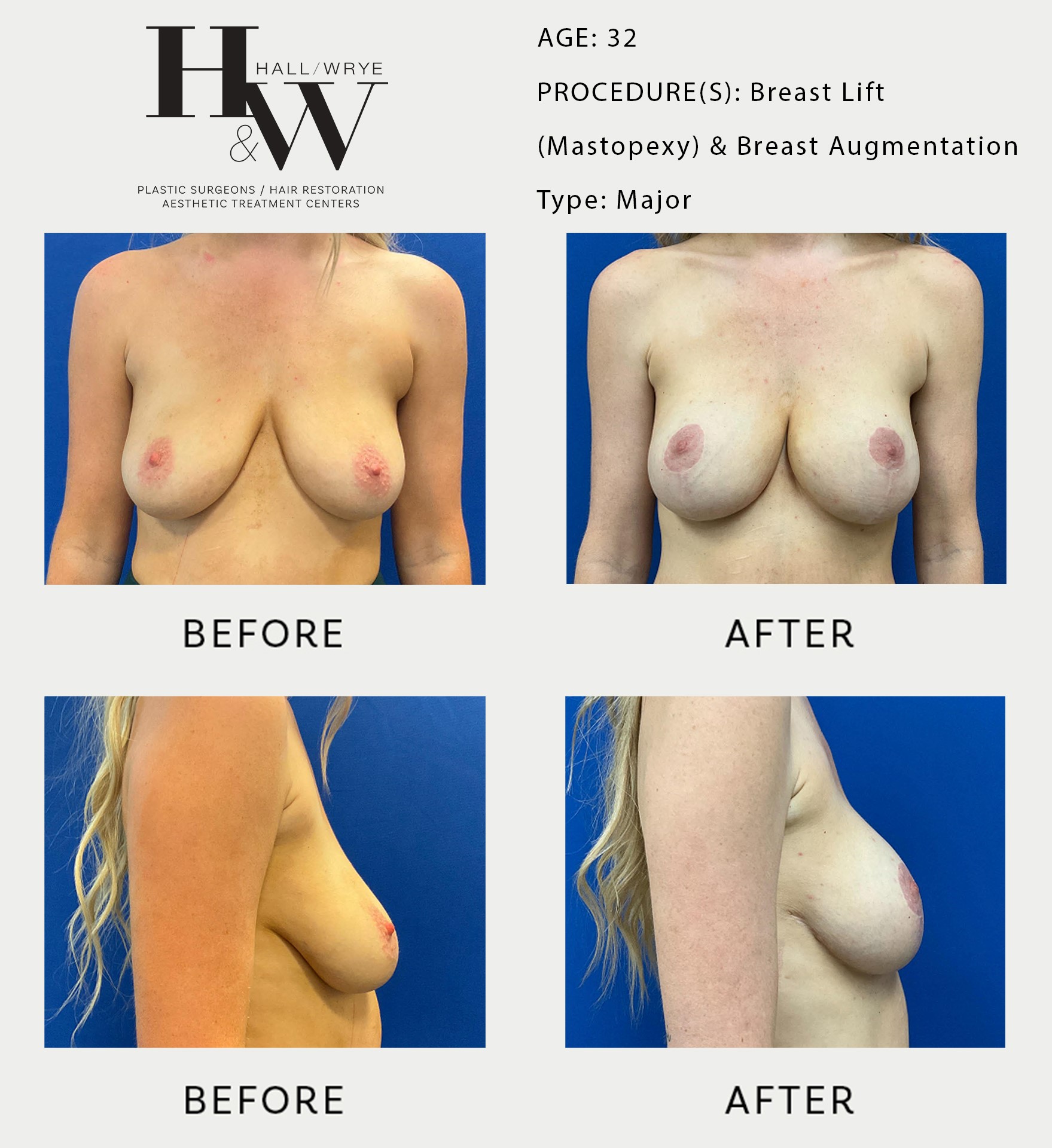 Doctors Hall and Wrye are top-ranked board-certified plastic surgeons in Reno, masterly performing breast lift surgery with implants for over two decades. Breast lift (mastopexy) combined with a breast augmentation enhances the volume of the breasts and reduce the appearance of sagging. Witness the remarkable results achieved by Doctors Hall & Wrye, showcasing patients newfound confidence by visiting our before-and-after gallery. Our commitment to natural-looking results, personalized to each patients unique goals are a testament to our dedication and skill. If you are looking for a breast augmentation and breast lift (mastopexy) in Reno Nevada, book your consultation today.